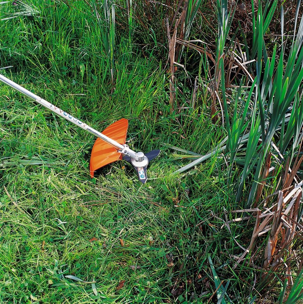 Effektiv, vändbar stålblad med 3 skärkanter för tuff röjning.