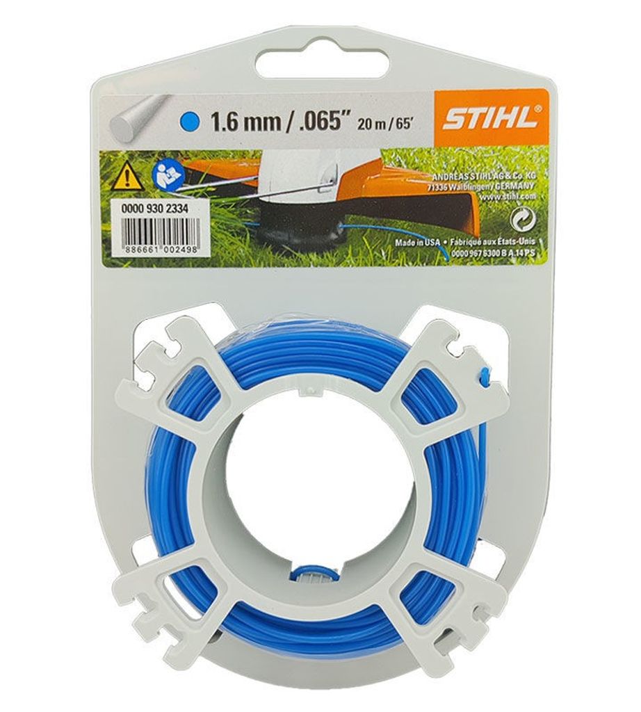 Den blå nylontråden är tillverkad av ett rivstarkt och långtidselastiskt material som klarar både lätta och mer krävande trimningsuppgifter. Trådens form och material gör att den fungerar smidigt i hög hastighet och ger ett jämnt och rent snitt. Passar trimmers och röjsågar som är kompatibla med 1,6 mm trimmertråd.