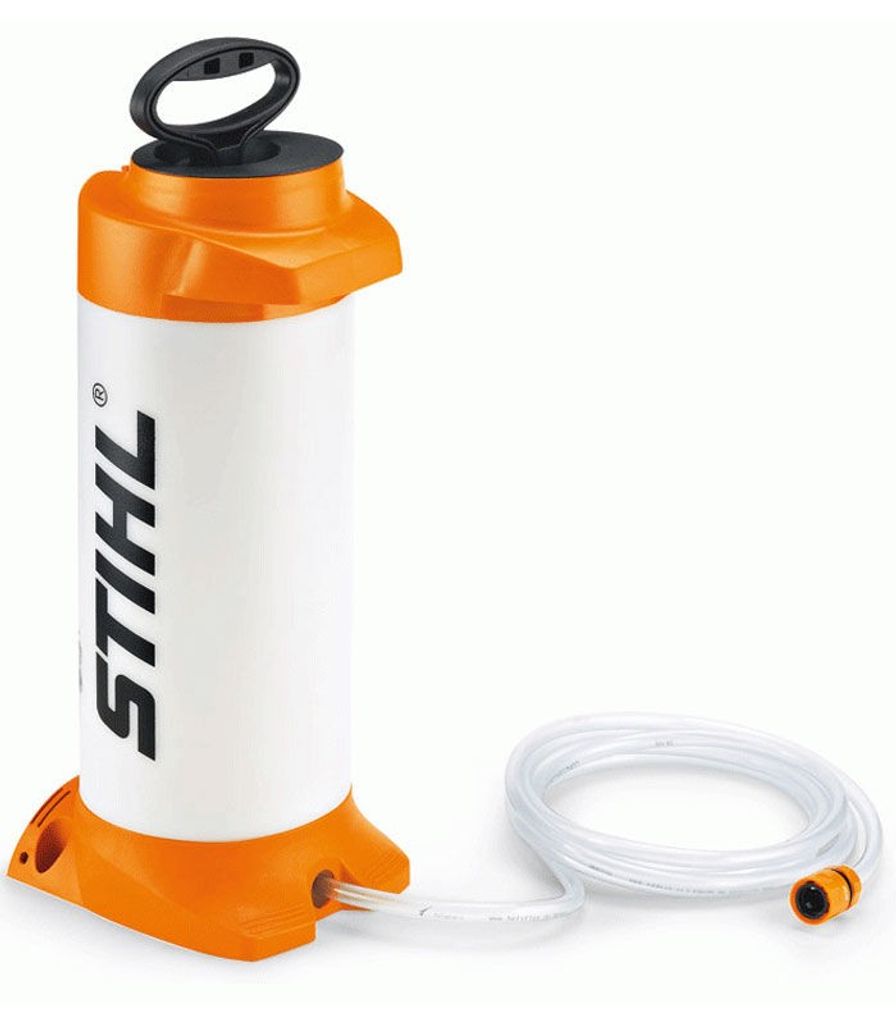 Praktisk tryckvattenbehållare till kapmaskiner för ett rent skär utan damm, rymmer 10 l.