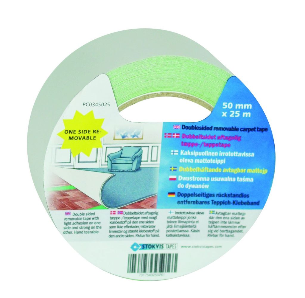 Stokvis PC0345025 Dubbelhäftande mattejp, hög/låg-häftande 50 mm x 25 m