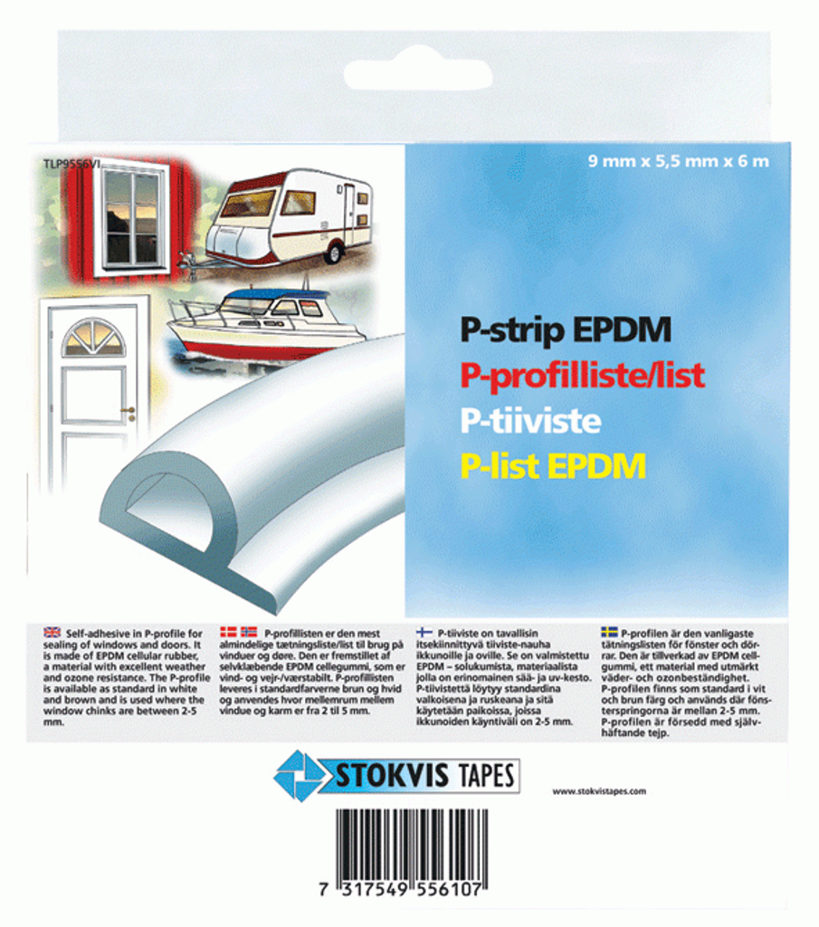Stokvis vit tätningslist av EPDM cellgummi som är väder - ozonbeständig. Passar till springor mellan 2 - 5 mm. Självhäftande.
