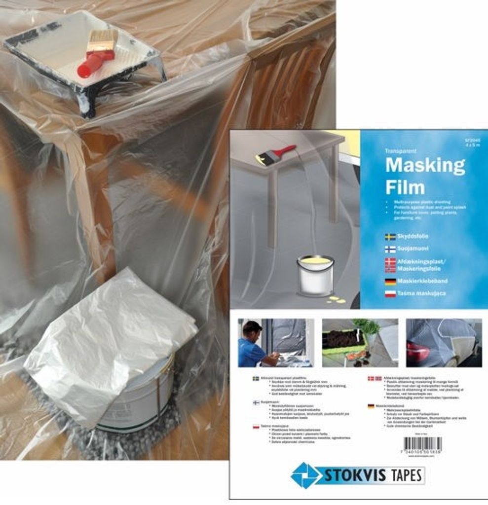 Skydda ytor och föremål effektivt med Stokvis Skyddsplast 7my 4x5m, en limfri och flexibel lösning för att hålla renlighet och skydda mot damm och smuts.