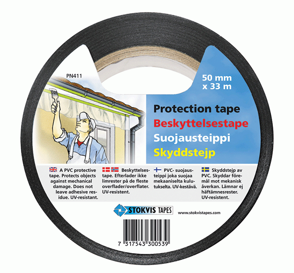 Stokvis skyddstejp som är speciellt framtagen för utomhusbruk. Skyddstejpen är en slät kraftig maskerings-/skyddstejp av PVC. Kan appliceras på aluminium. Tejpen kan också skydda underlaget mot mekanisk åverkan.