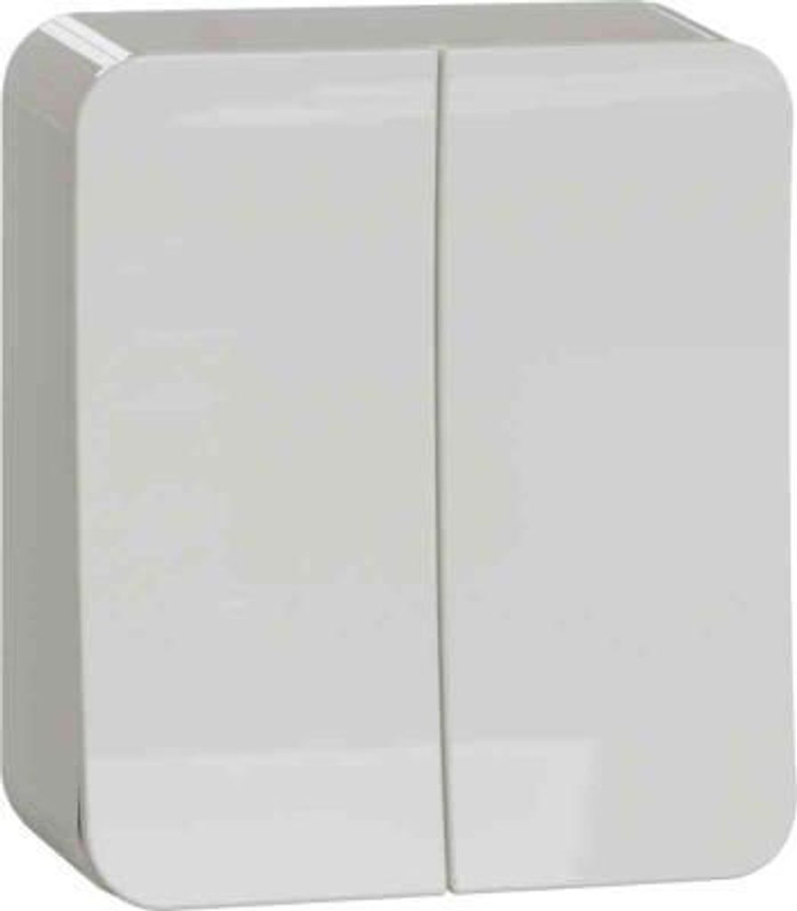 Den utanpåliggande strömbrytaren har samma insats, och samma blanka vita färg som den infällda Exxact-serien.