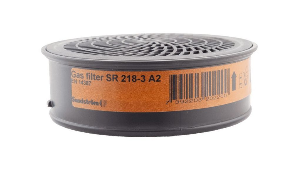 Sundström Gasfilter SR 218, klass 2, är särskilt framtaget för att användas med Sundströms halv- och helmasker. Det är av typ A och skyddar effektivt mot organiska gaser och ångor som har en kokpunkt över +65 °C, inklusive lösningsmedel. För extra skydd kan det lätt kombineras med partikelfilter SR 510 P3 R, vilket ger skydd mot aerosoler, särskilt vid sprutmålning. Filtret erbjuder också optimerad upptagningsförmåga för gaser och ångor.