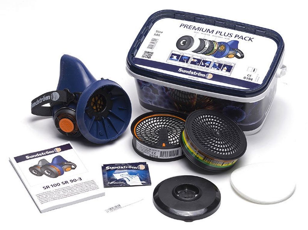 Sundström Premium Plus Pack innehåller halvmask SR 100 i storlek M/L, komplett med partikelfilter, gasfilter, förfilter och tillbehör – allt förpackat i en dammsäker förvaringsbox. Perfekt för professionellt andningsskydd vid hantering av gaser, ångor och partiklar.