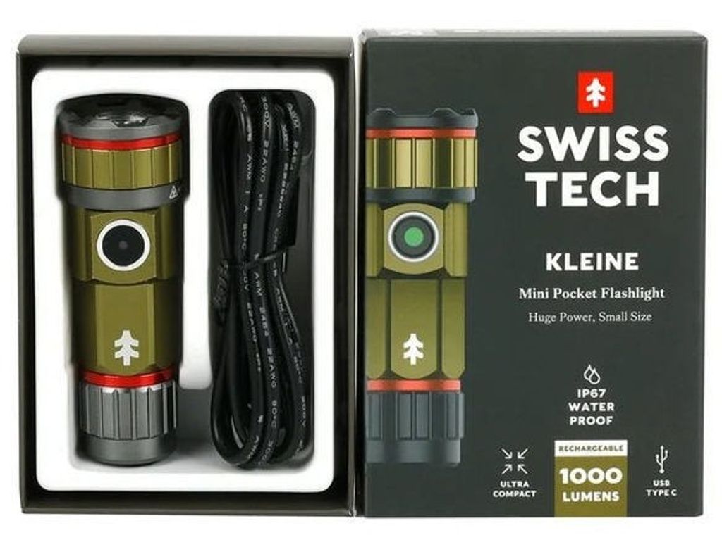 Swisstech Kleine är en liten, men otroligt kraftfull ficklampa designad för att leverera maximalt ljus i ett kompakt och portabelt format. Med turbo-läget når lampan en ljusstyrka på 1000 lumen, vilket är perfekt för situationer där du behöver extra stark belysning under kortare perioder. Den robusta konstruktionen med IPX7-certifiering gör den helt vattentät och pålitlig även i de mest krävande miljöerna.