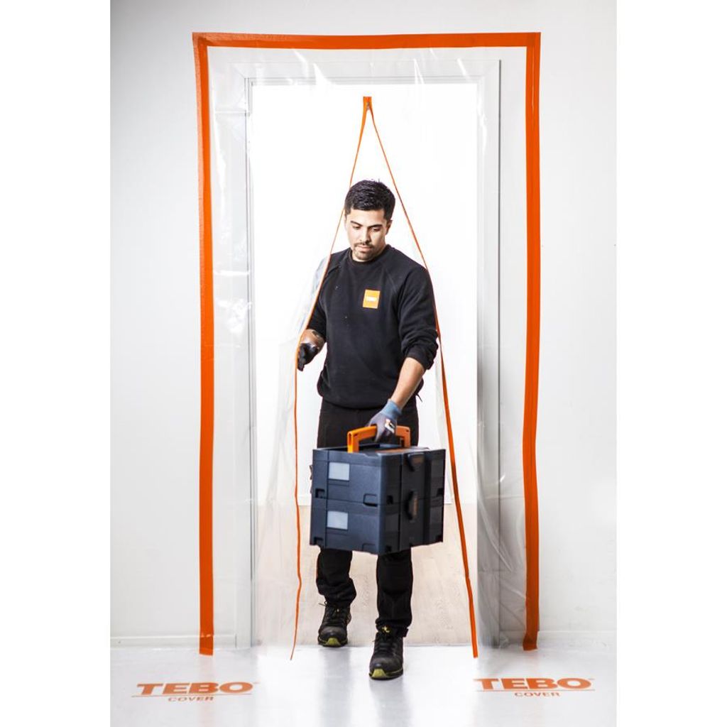 Tebo Blixtlåsdörr "I" är idealisk för användning vid renoveringar, byggprojekt och andra situationer där damm och smuts behöver kontrolleras. Perfekt för att skapa en temporär barriär i dörröppningar, vilket skyddar angränsande rum från damm och smuts under arbete.