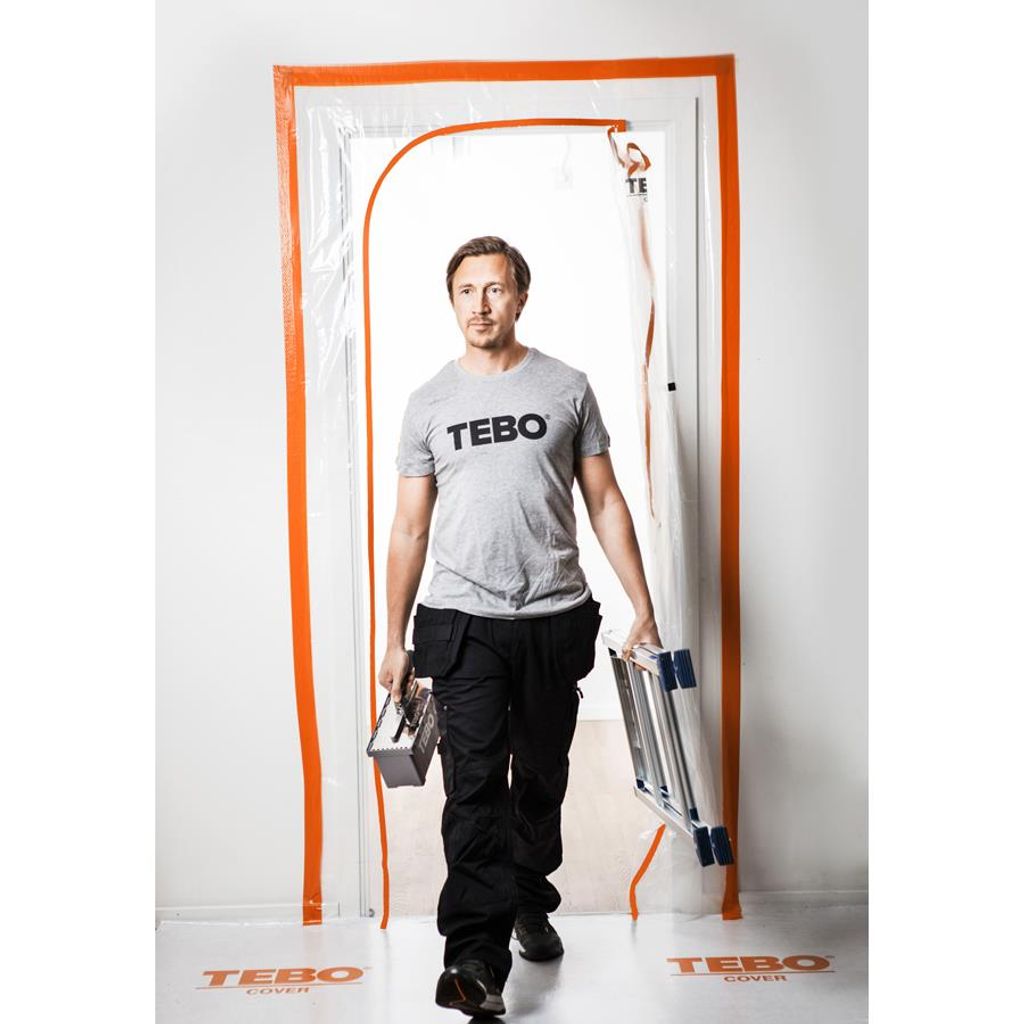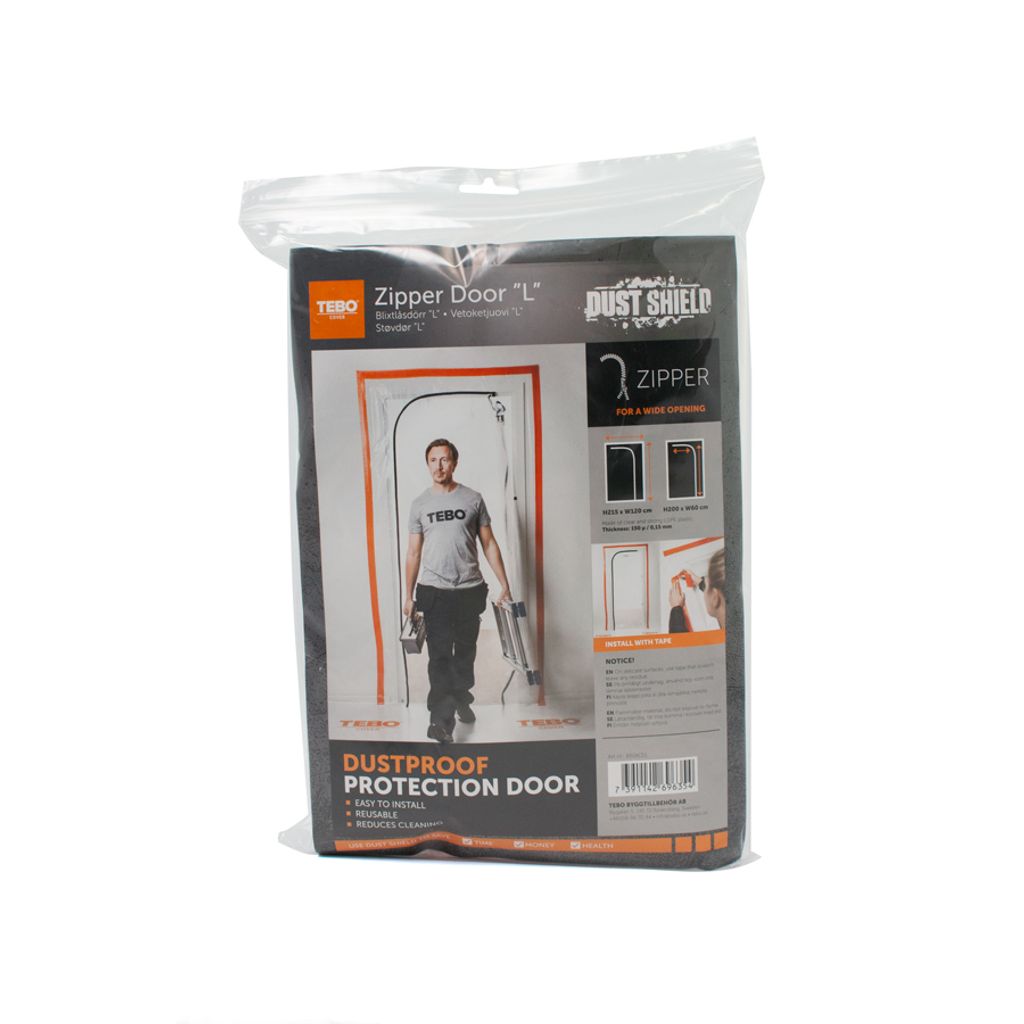 Enkel och smidig skyddsplast med dragkedja för täckning av t.ex. dörröppningar vid renovering. Det L-formade blixtlåset gör att det blir en öppning ända ned till golvet.