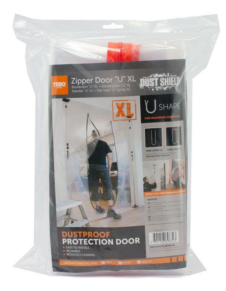 Enkel och smidig skyddsplast med dragkedja för täckning av t.ex. dörröppningar vid renovering. Tillverkad av HDPE-plast.
