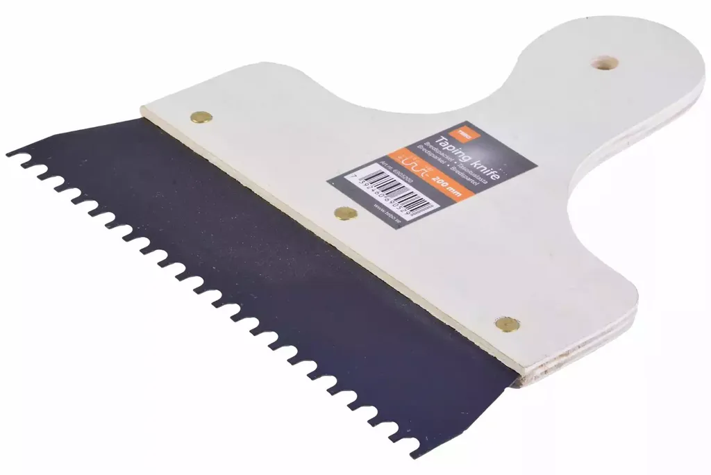 Plywoodhandtag med blad av stål. 3x6 mm rundtandning. För applicering av bl.a. lim. fix och fästmassa.