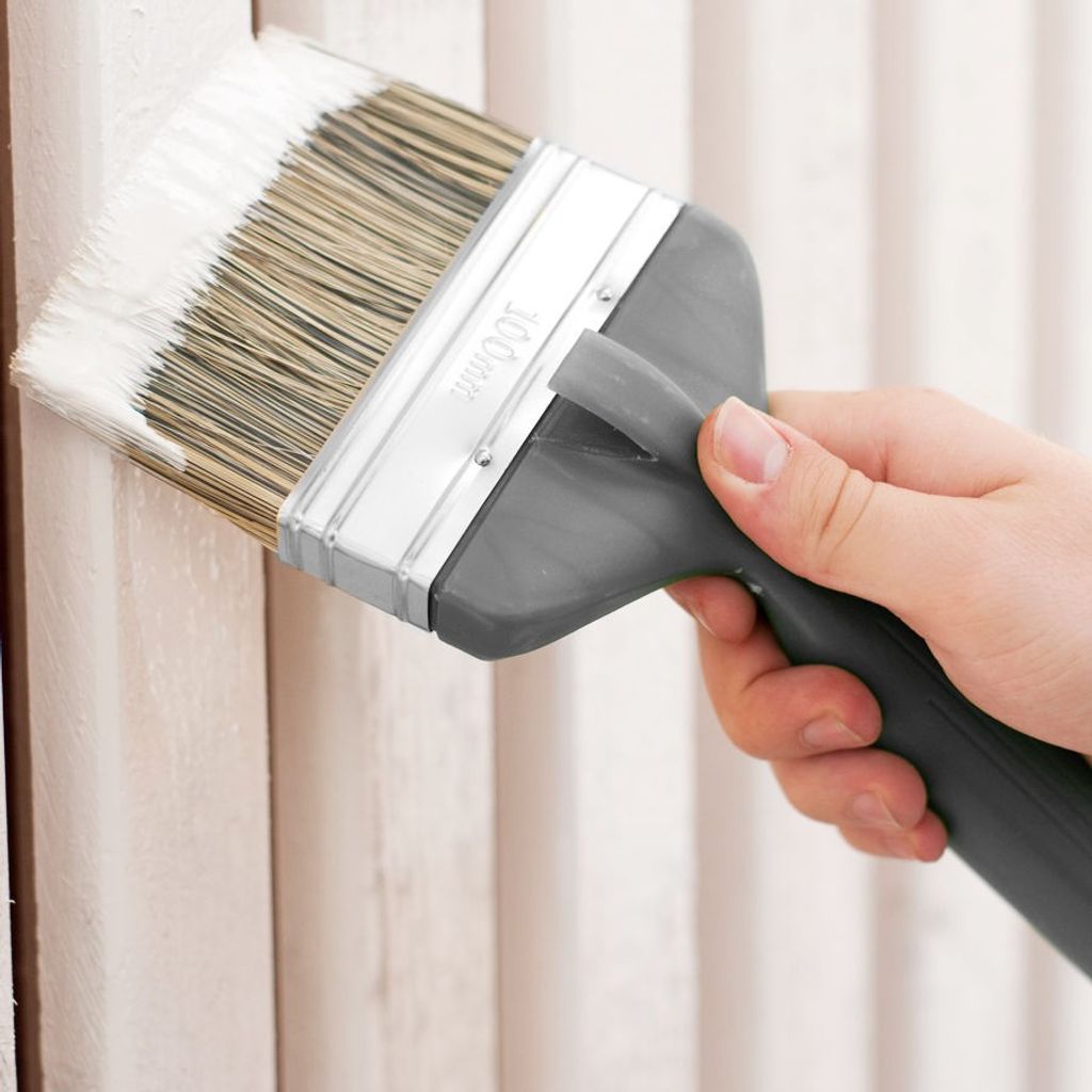 Fasadpensel med vinklat plastskaft. Blandborst. Lämplig till både olje- och vattenbaserad färg och träolja.