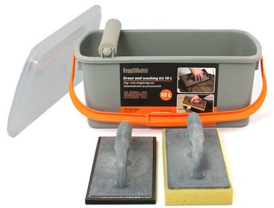 Ett komplett set för fogning och rengöring av byggkeramiska plattor. 10 liters rengöringsbalja med lock och urkramningsrulle. Setet innehåller rengöringsplatta och fogplatta.