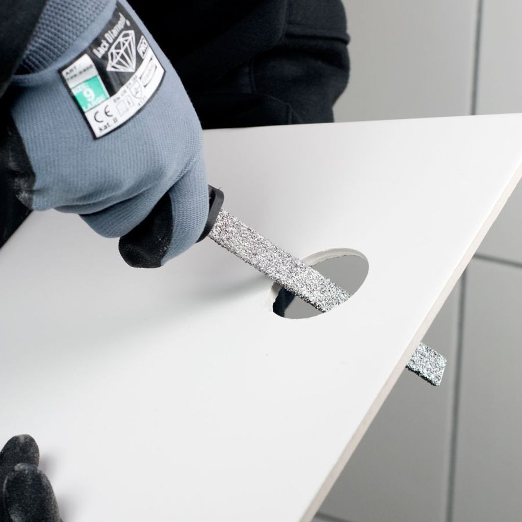Kakelfil med wolframkarbid blad med en flat och en rund sida.