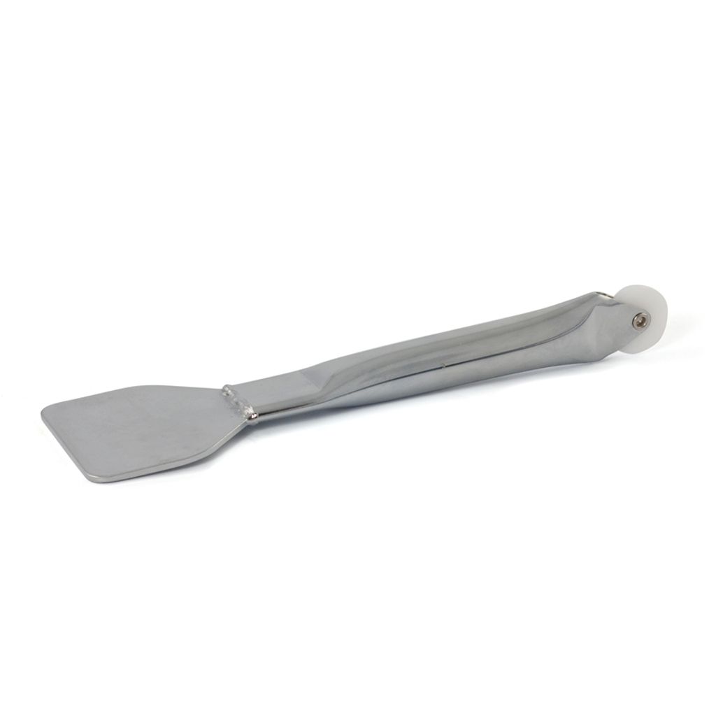 Tillverkad av stål. Används för att släta ut och eliminera luftbubblor vid mattläggning. Försedd med plasthjul i ena änden för att kunna pressa mattan hårt mot väggen och får en tydlig markering.