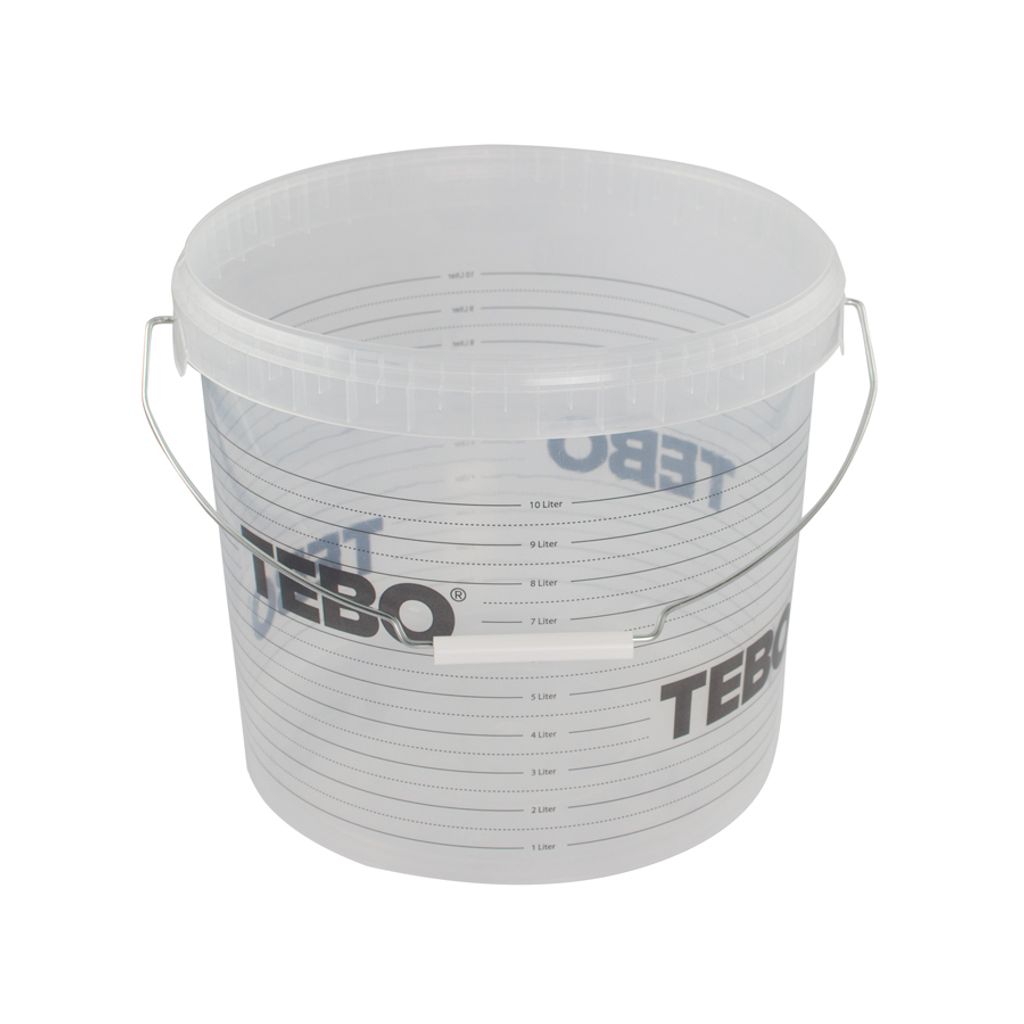 Rund transparent hink av polypropen med tydlig litergradering. 3,2 mm bygelhandtag i galvaniserat stål med plastgrepp. Livsmedelsklassad.