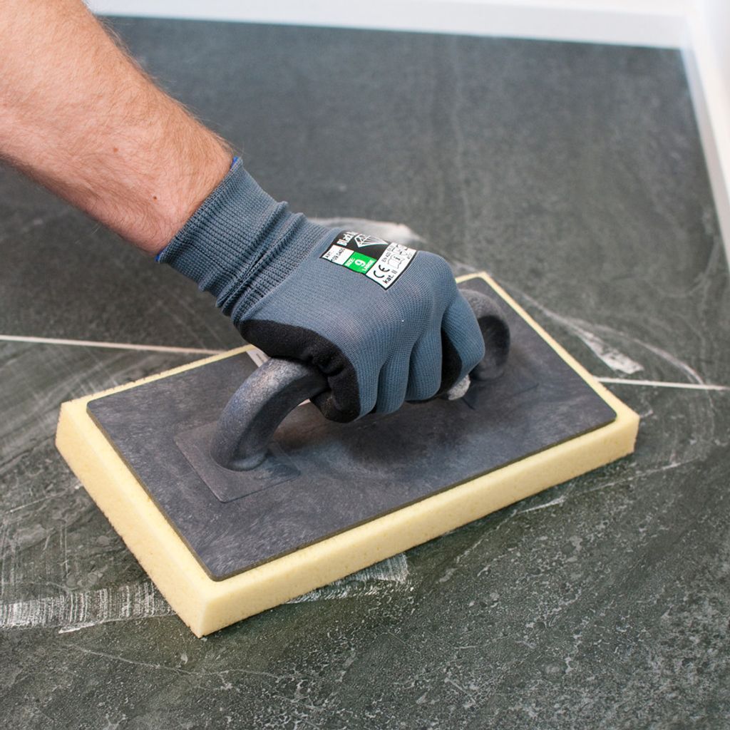 Plattans storlek ger bra täckning per drag och passar både på större ytor och när du vill arbeta noggrant längs kanter. Ett utmärkt val för plattsättare och hemmafixare som vill ha ett pålitligt rengöringsverktyg för en snygg slutfinish efter fogning.