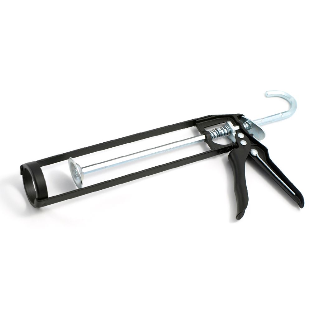 Skelettpistol av stål. För snabb och enkel applicering av fogmassor och lim. Passar för patroner med 300 ml.