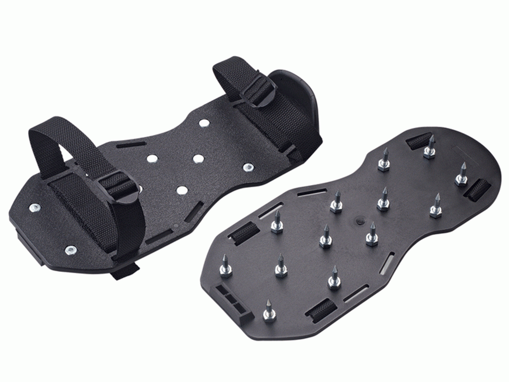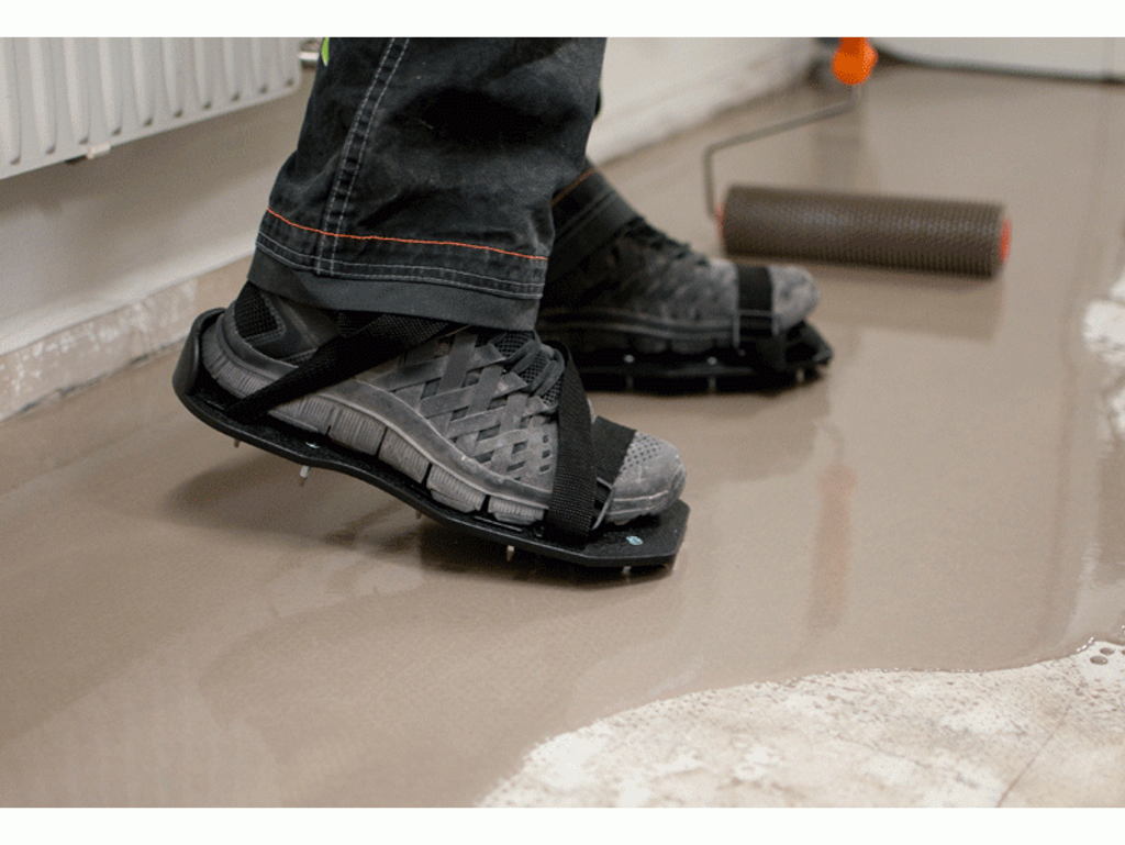 Tillverkade av plast med spännremmar. Används för att kunna gå på nybelagda ytor av avjämningsmassa och epoxi. 13 st 25 mm stålspik per sko.