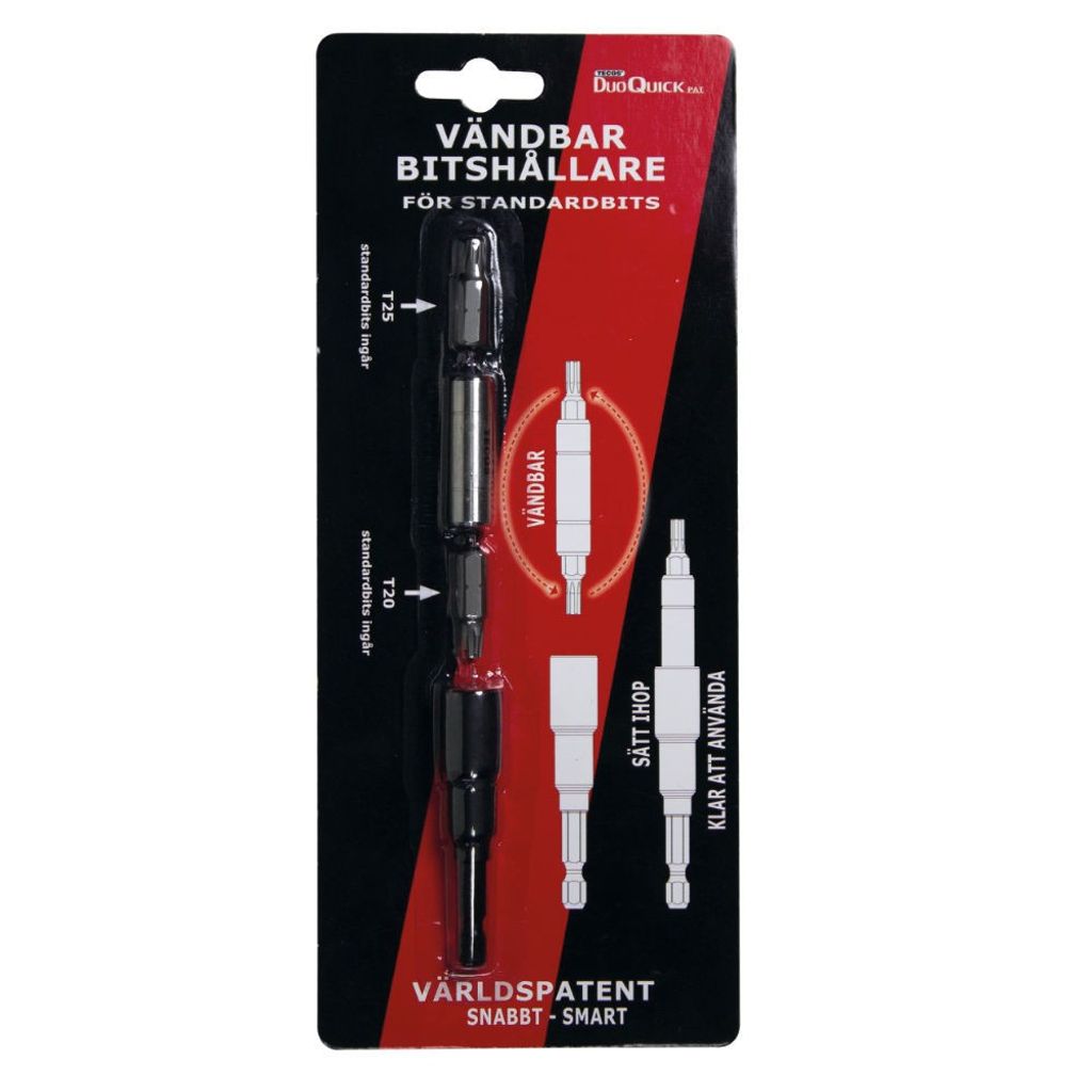 Bitshållare Duo Quick är en revolutionerande lösning för snabbt och enkelt byte av bits. Denna 4-delars sats är utformad för att maximera effektiviteten och minska tiden det tar att byta mellan olika bits. Med en bitshållare och ett vändbart dubbelt bitsrör kan användare snabbt växla mellan de två medföljande bitsen (Torx 20 och Torx 25) utan att behöva ta av sig handskarna. Detta är särskilt användbart i miljöer där tid är en kritisk faktor och där användare ofta behöver byta mellan olika bits.