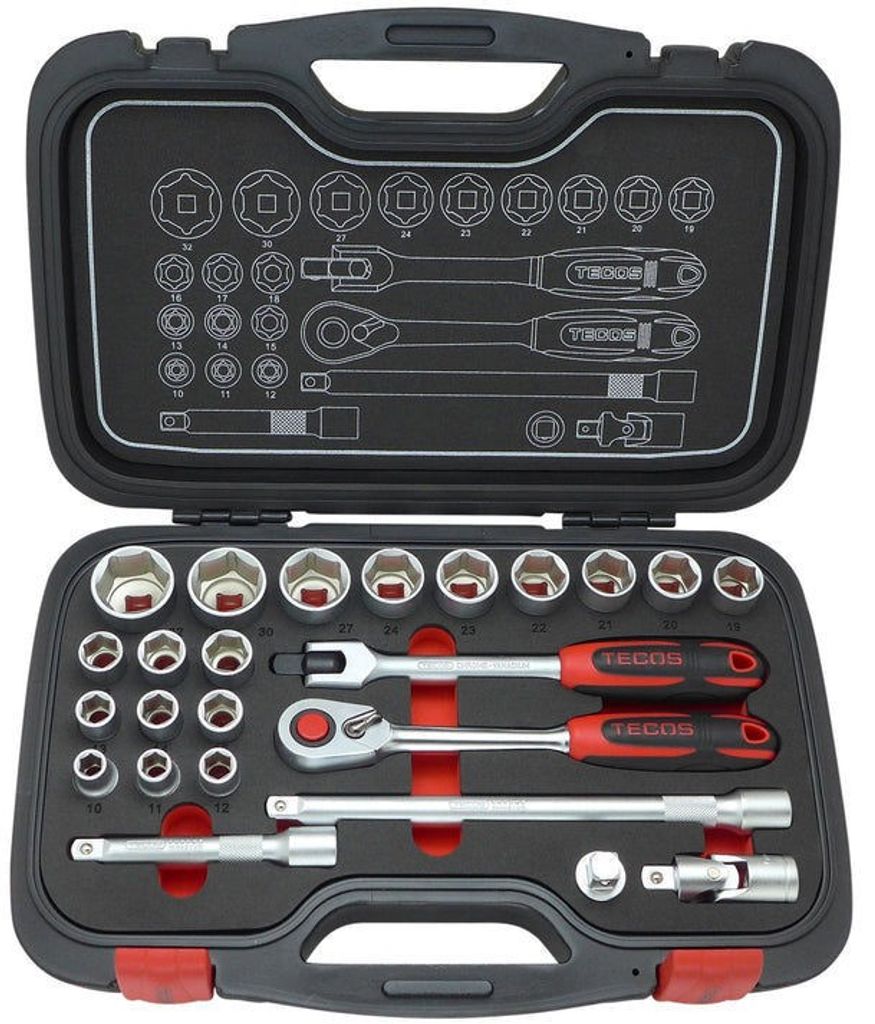 Tecos T-2024 Hylsnyckelsats – 24-delars med Flankdrive 10-32mm 1/2"