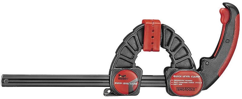 Teng Tools Enhandstving CMQL300 med unik design med en kraftig toppmonterad hävarm som gör det lätt att spänna med rätt kraft. Lossas snabbt med frigöringsknappen. 2-komponents handtag. Skyddshattar av plast på klämytorna.