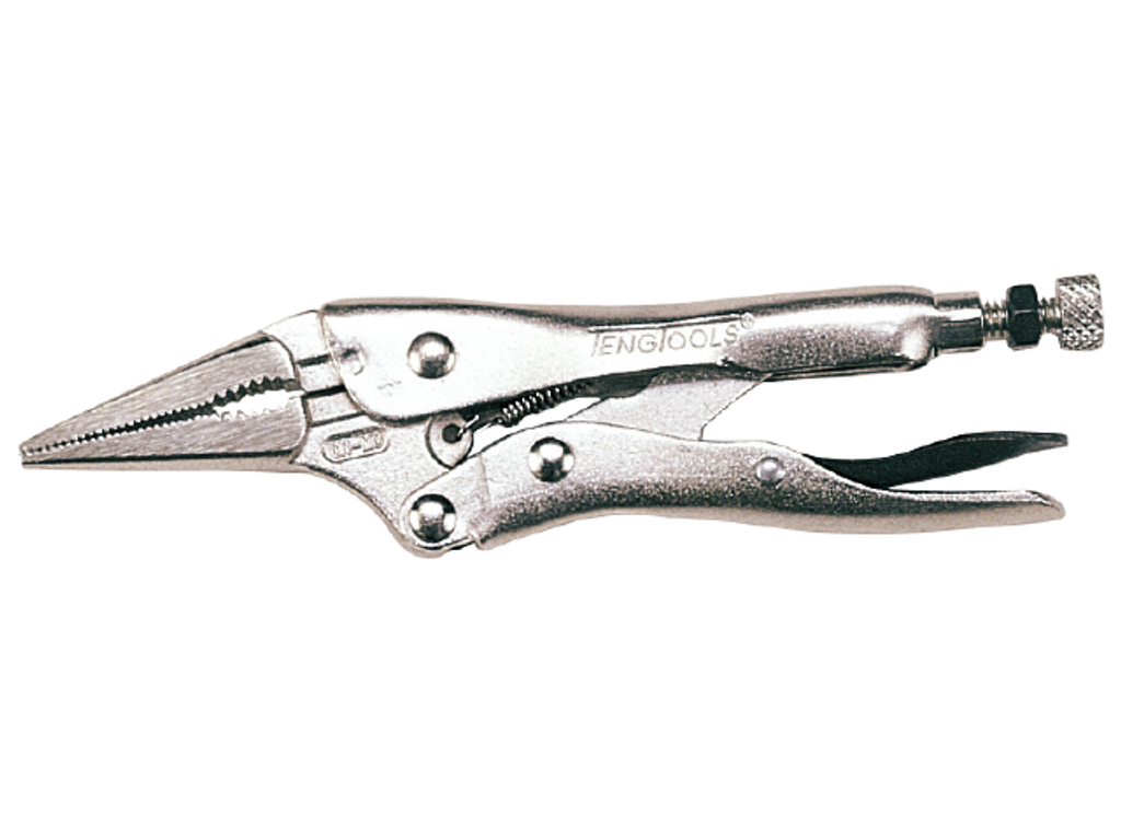 Teng Tools Med extra smala käftar. Försedd med rörgrepp och avbitare. Självlåsande. Med utlösningsarm. Förnicklad.