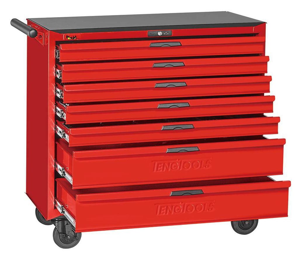 En extra bred vagn med 7 lådor för att rymma en stor mängd verktyg. Detta är en perfekt mekanikersats för verkstaden inom industri eller Auto eller hemma i ditt garage. Den breda vagnen har en bra arbetsyta för avlastning eller tillfällig arbetsbänk.
