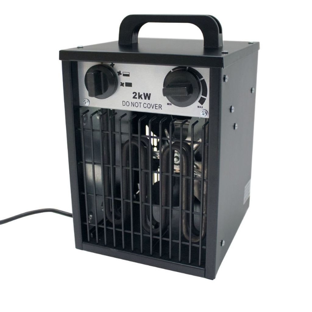 Liten traditionell rektangulär, smidig portabel 2kW värmefläkt i robust metall. Lämplig för garage, förråd, husvagn eller liknade som ska värmas upp tillfälligt eller permanent. Fläkten är i svart metall finish och är utrustad med ett stabilt handtag som gör den lätt att flytta. 1.2m kabel med jordad stickkontakt 230V.