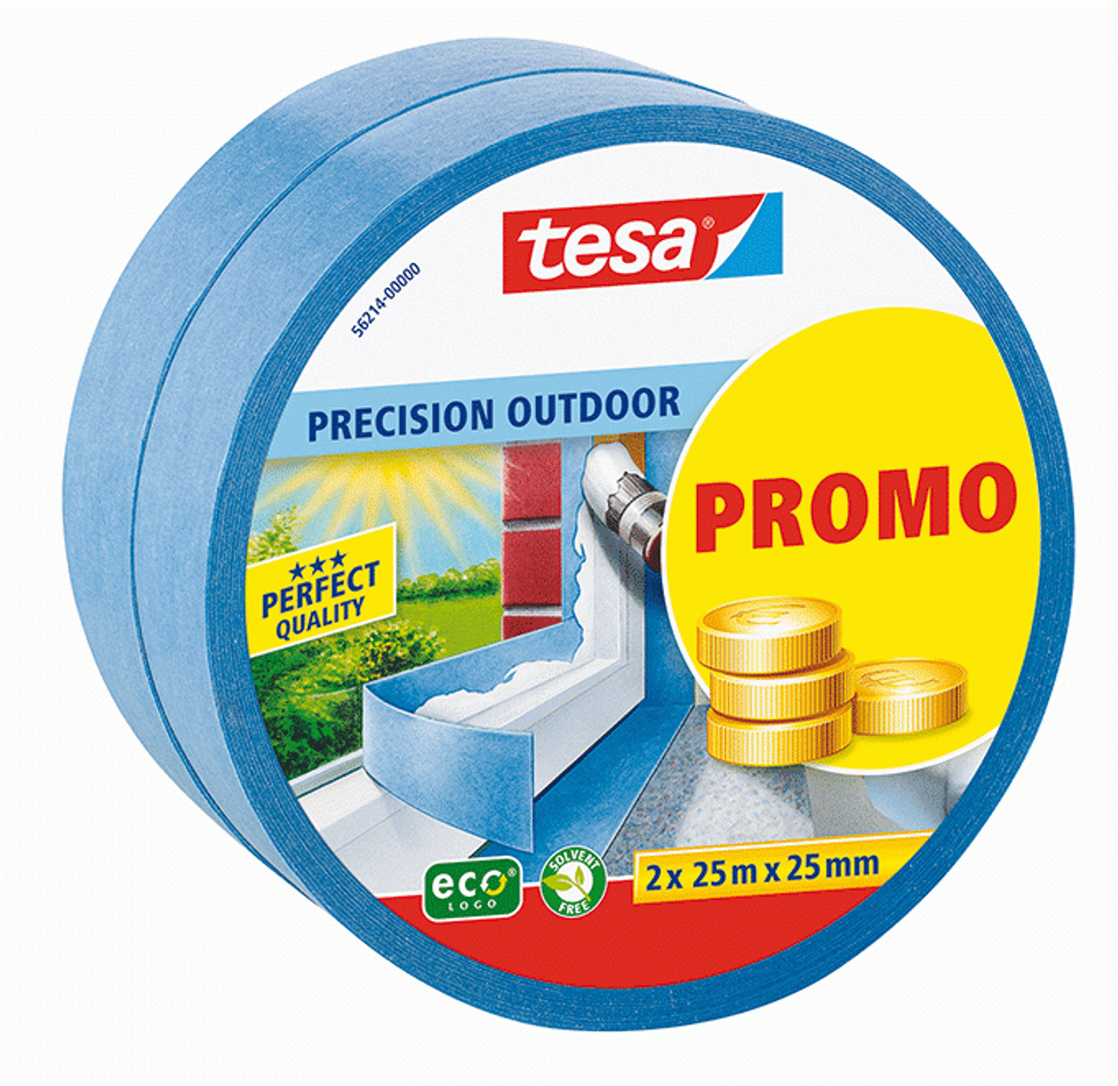 Maskeringstejp Outdoor Tesa. Ger extra skarpa färgkanter. Specialutvecklad för målningsarbeten utomhus. Extremt väder- och UV-beständig för långvarigt bruk. Kan sitta kvar upp till 8 veckor inom- och utomhus utan att lämna häftämnesrester. Kan användas me