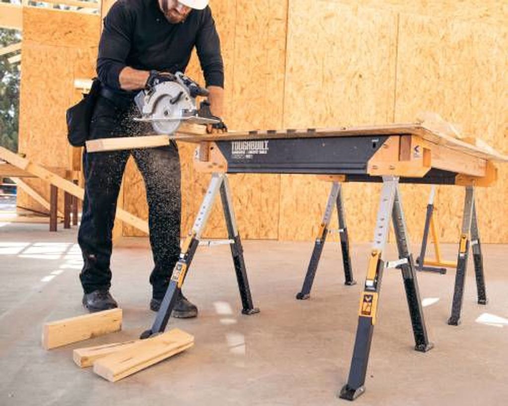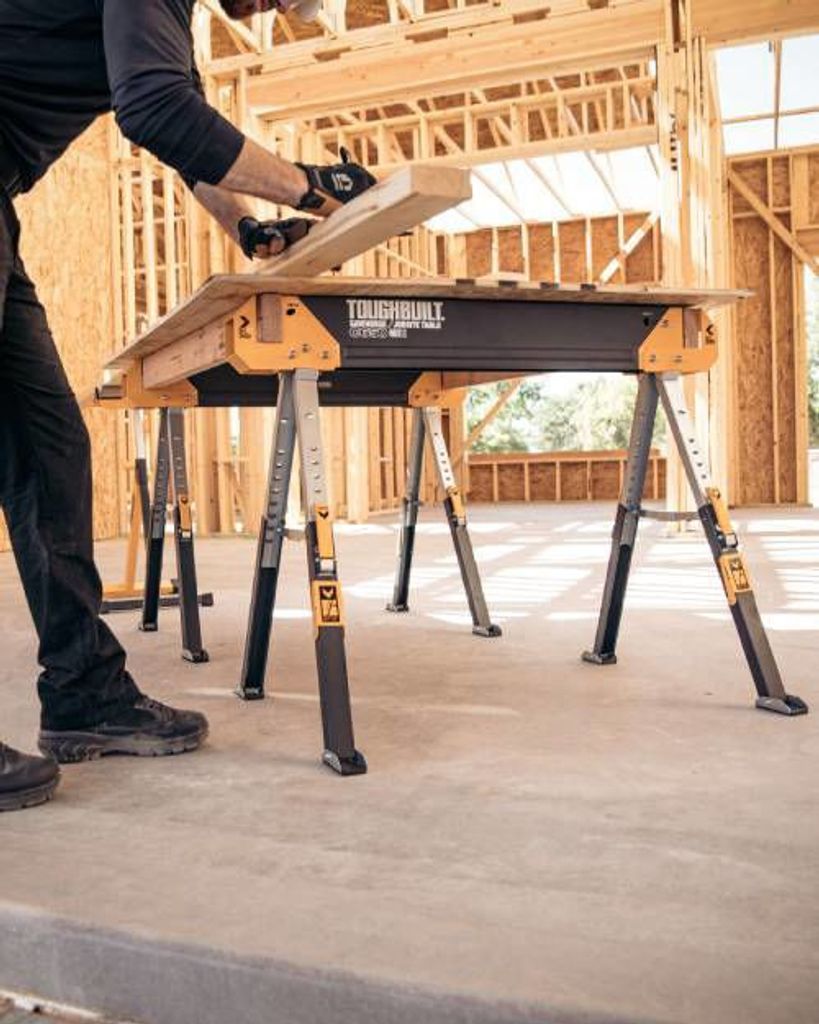 ToughBuilt® C650 Sågbock och arbetsbord är slitstarkt och robust. Detta sågbord är tillverkat av 100 % stål och har kapacitet på 590 kg ensam och 1 179 kg per par.