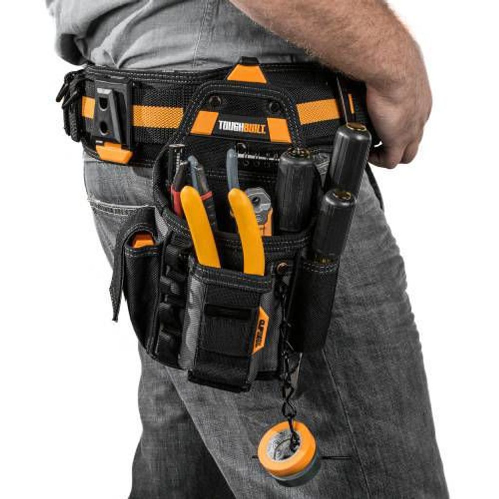 Den patenterade ClipTech™ Hub™ gör att ToughBuilt® Elektrikerficka kan fästas på och av alla bälten, och det integrerade stativet gör att den kan stå upprätt på marken nära till hands. Speciellt anpassad för elektrikers verktyg.