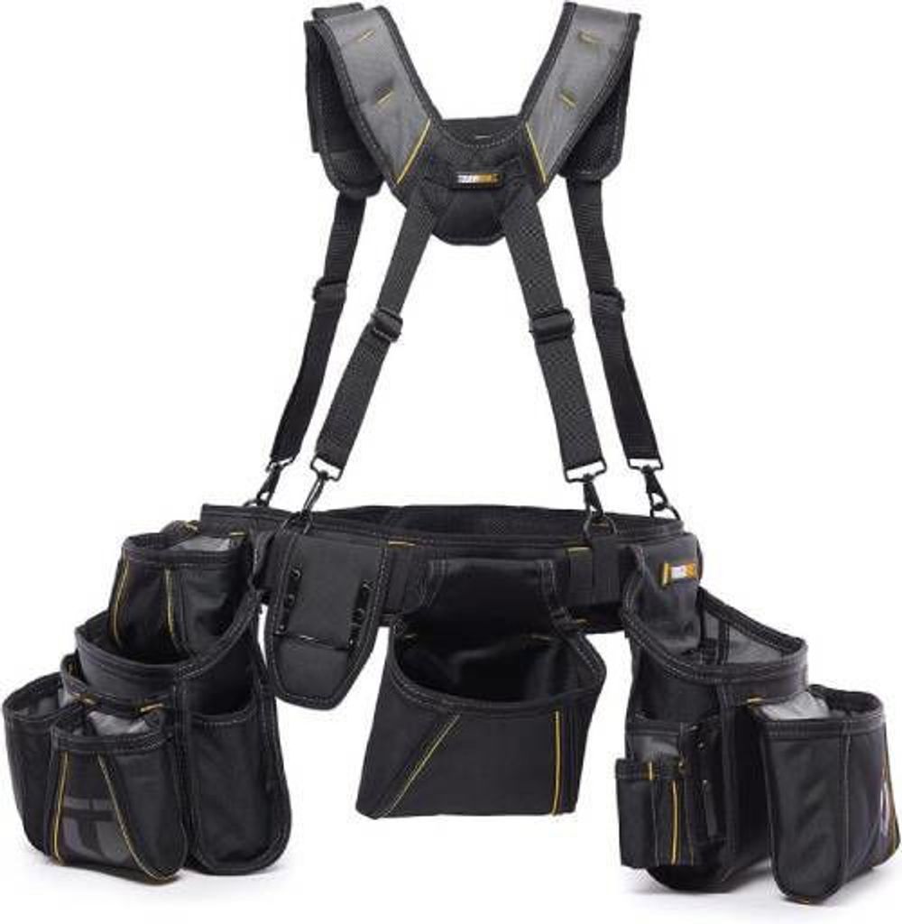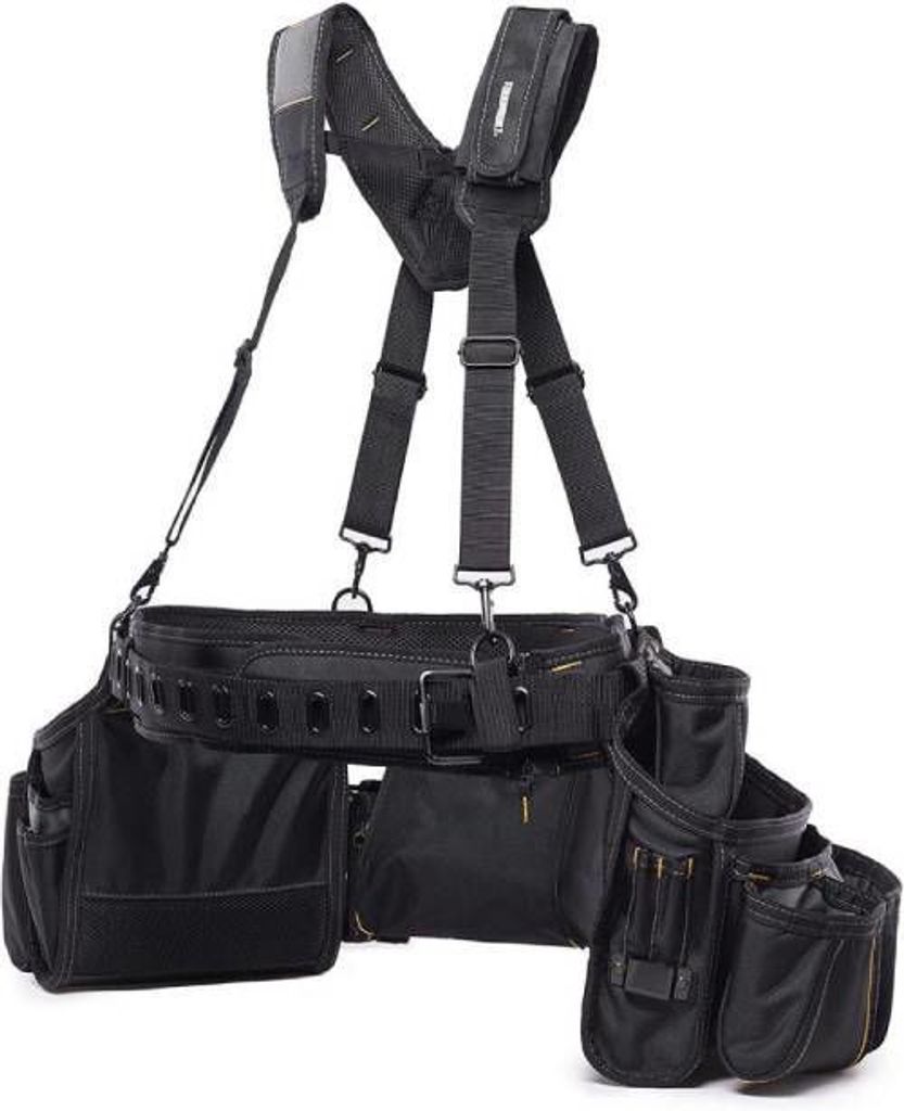 ToughBuilt® Pro Framer Upphängningsrigg är designad för att hålla dina verktyg stadigt på plats även i de tuffaste miljöerna. Vaddering på baksidan hindrar fickorna från att kontinuerligt stöta benet. Extremt slitstarkt bältesspänne i stål och förstärkta spänningspunkter för otrolig hållbarhet.