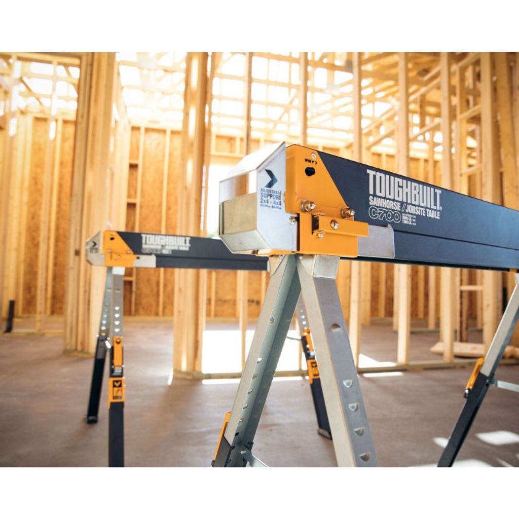 ToughBuilt C700 Sågbock och arbetsbord är hållbart, robust och erbjuder oöverträffat värde. Tillverkad av 100 % högkvalitativt stål, har denna sågbocken anmärkningsvärd kapacitet på 590 enbart och 1180 kg per par.