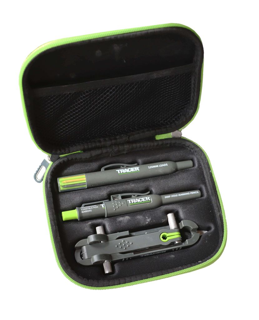 Tracer ProScribe är ett högkvalitativt konturverktyg med inbyggd stiftpenna som gör det enkelt att markera och föra över exakta konturer på många material. Den låsbara konstruktionen ger stabilitet och precision, och den robusta metall och plast designen tål tuffa miljöer. Levereras med sex reservstift och ett praktiskt hölster för säker förvaring och smidig transport.
