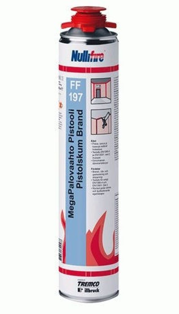 Nullifire FF197 är ett professionellt brandklassat PU-skum för tätning av brandklassade fogar och genomföringar i betong och gipskonstruktioner. Skummet är certifierat enligt EN 1366-3 och 4: 2006, EN13501: del 2: 2007+A1: 2009, CE ETAG 026.