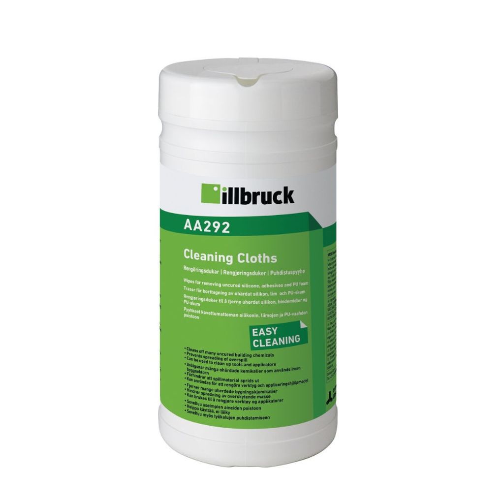 Rengöringsduk AA292 används för att torka bort vått och halvhärdat tätningsmedel, lim, bitumen, polyuretan, expanderande skum, syntetiskt fyllmedel och epoxi samt våt/halvhärdad målarfärg från händer, verktyg och ytor.