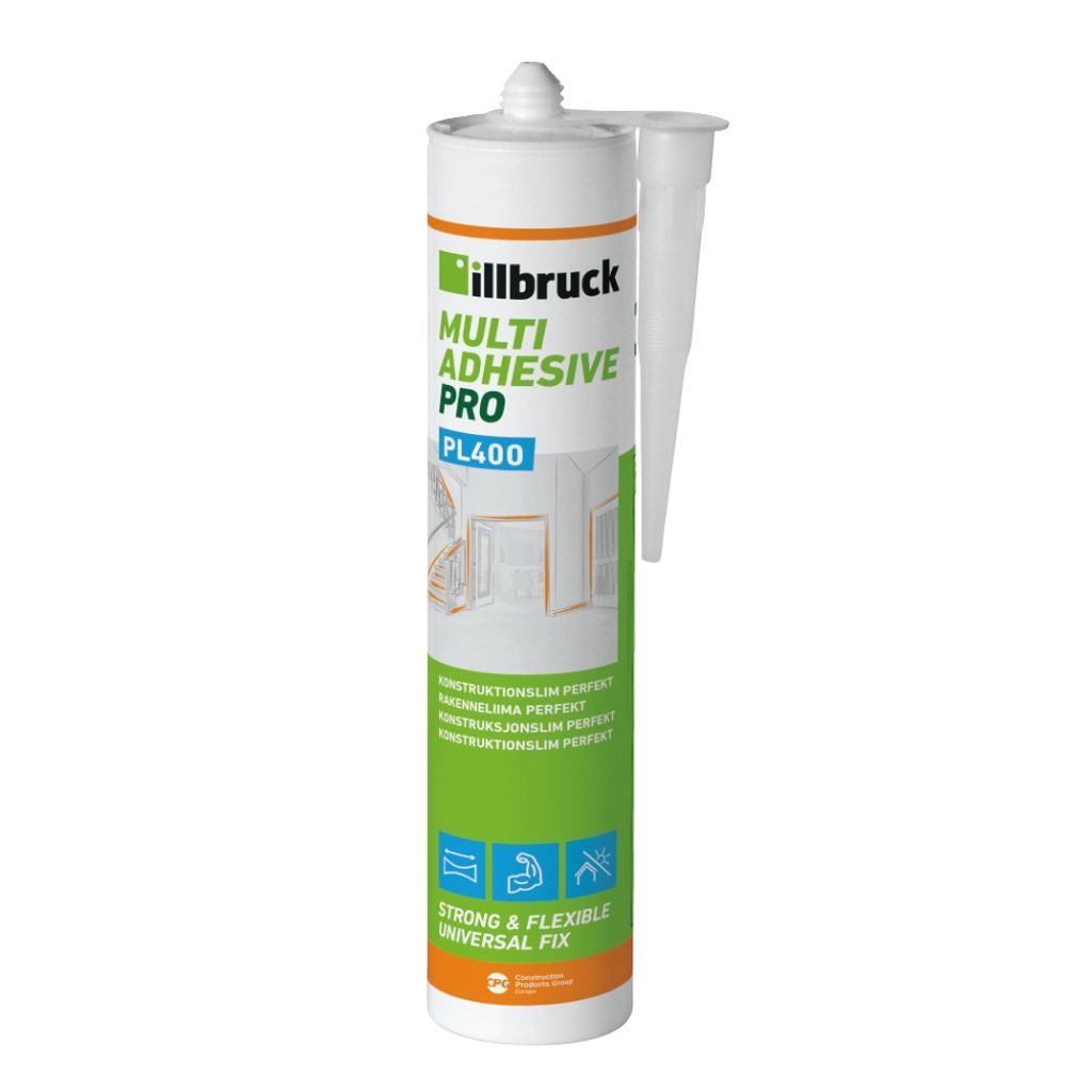 - Enkel applicering: PL400 kan appliceras med en standard limpistol och är lätt att använda för både professionella och hemmafixare.