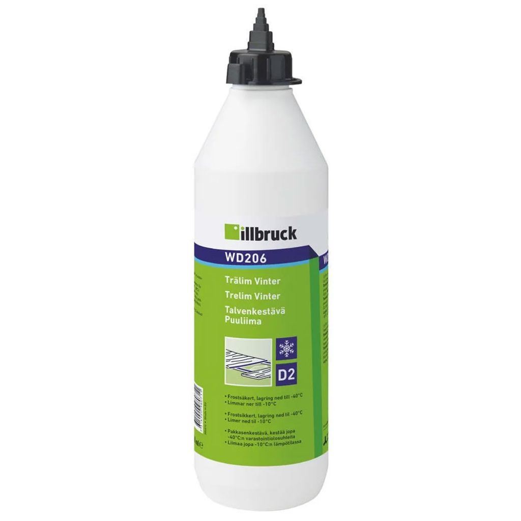 Tremco Trälim WD206 Vinter är ett mångsidigt modifierat PVAc-lim på 750ml, utformat för effektiva inomhuslimningar av trä och andra cellulosabaserade material. Detta lim är idealiskt för en rad olika applikationer, inklusive foglimningar, tapplimningar, fanering, samt montering av ramlist och andra hantverksprojekt. Med dess unika antifrostbehandling limmar det effektivt ner till -10°C och kan lagras vid temperaturer ner till -40°C, vilket gör det till ett optimalt val för kalla arbetsförhållanden.