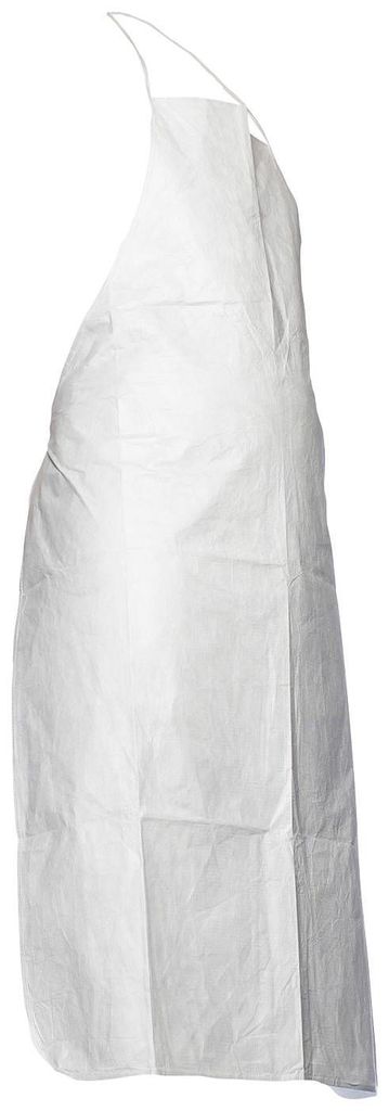 Tyvek Förkläde 500 av snabbspunnen polyeten med hög densitet. Lämplig vid farmaceutisk hantering, kemiskt skydd, bly och asbest minskning, sanering, generellt underhåll, drift, sprutmålning och generell rengöring.
