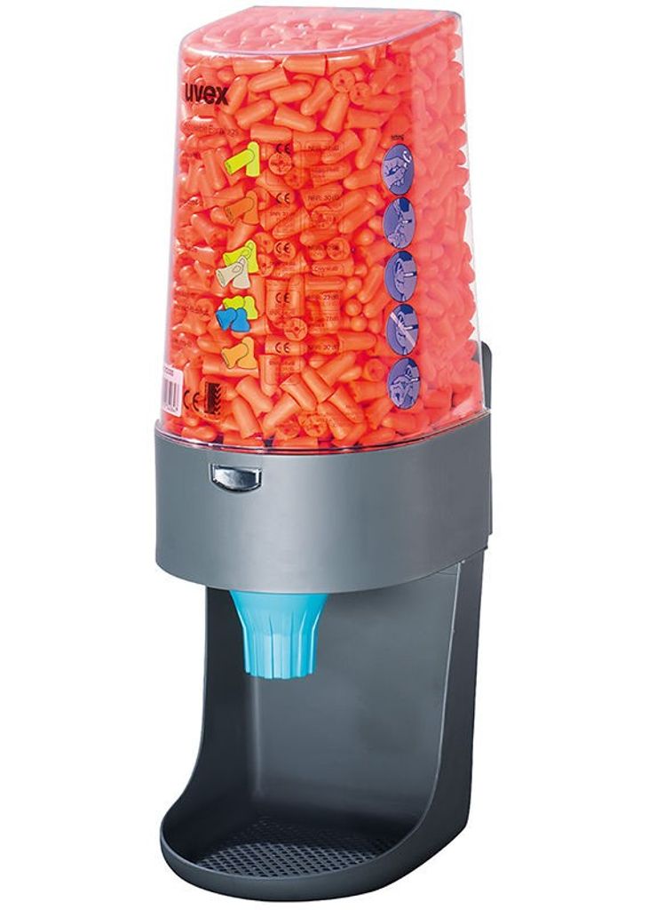 Uvex dispenser som passar till Uvex hörselproppar X-Fit & Com4-Fit. Utmärkt dispenser för arbetsplatser där enkel hantering av proppar behövs.