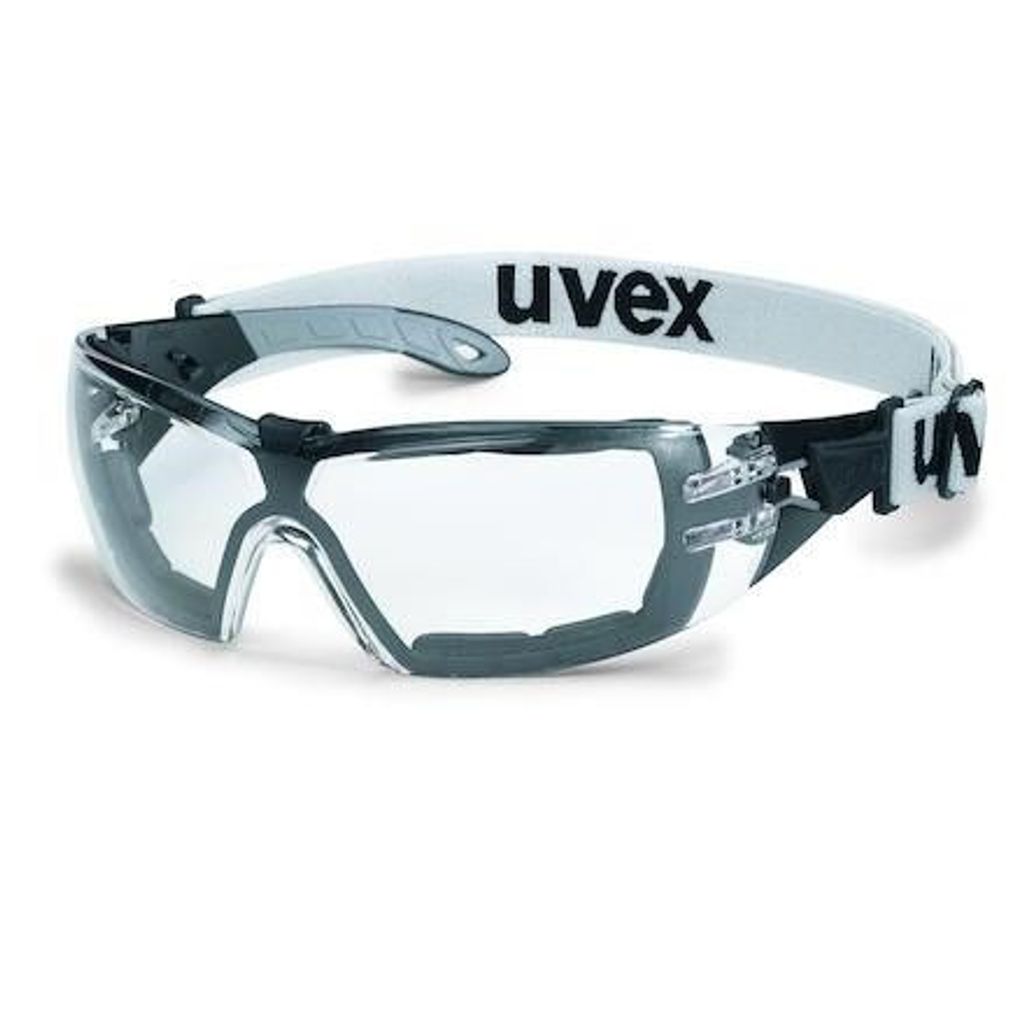 Moderna skyddsglasögon med elegant design och stort synfält som även skyddar ögon brynen. Dubbel sfärisk lins. Tunna skalmar gör det lätt att använda tillsammans med hörselskydd, hjälm eller stötskyddskeps. Pheos guard är en kombination av uvex pheos skyddsglasögon, tätningar och nackband. Ger en effektiv tätning som hindrar partiklar från att tränga in och skyddar mot stänk. Med svart/grå skalmar.
