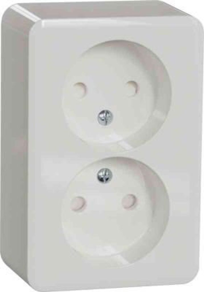 Ojordat, petskyddat vägguttag i modernt utförande utan synlig ram. Passar både i nya och äldre miljöer, och i de flesta av husets alla rum. För utanpåliggande montage, med skruvanslutning. Komplett produkt. IP20, men IP21 då kabeln förs in underifrån. Den utanpåliggande serien har samma blanka vita färg som den infällda Exxact-serien.