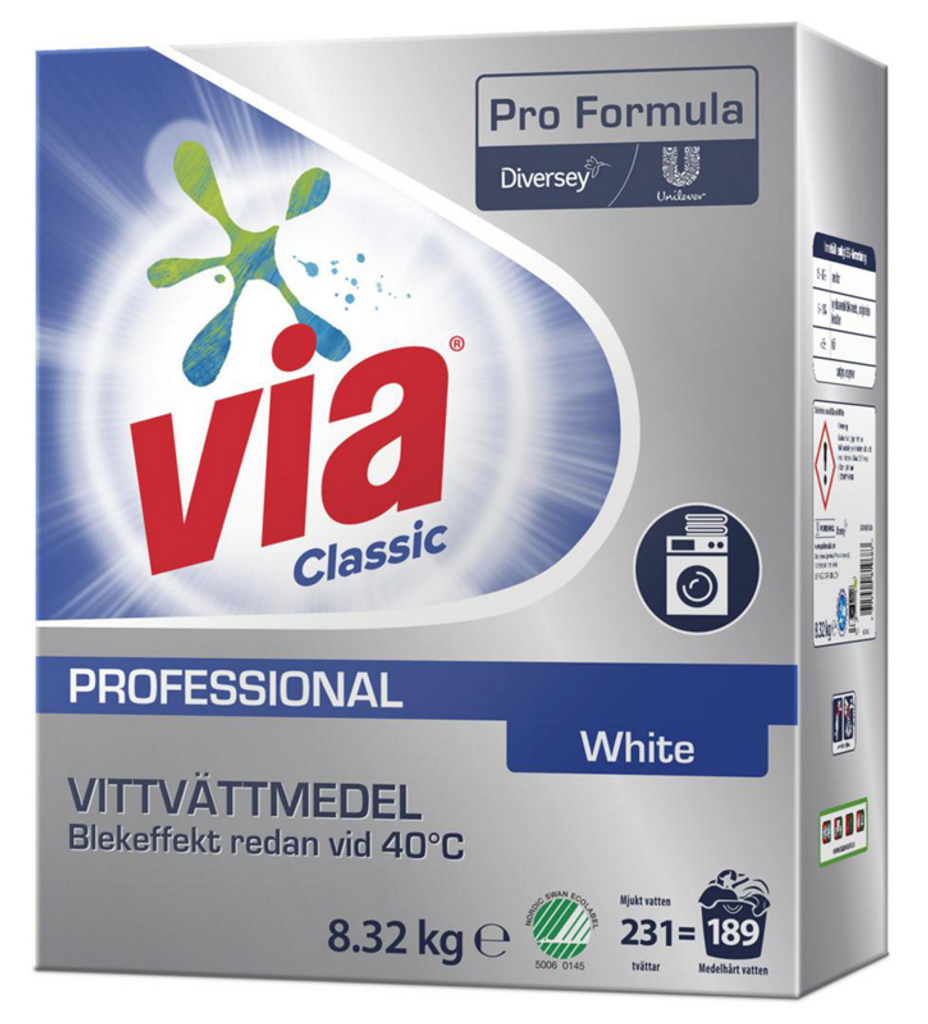 Via Professional Sensitive är perfekt för tvättning i hemmet eller professionella miljöer där hudvänlighet är viktig, exempelvis inom vård och omsorg. Effektivt för både ljusa och mörka textilier, samt på proteinrika fläckar och fett.