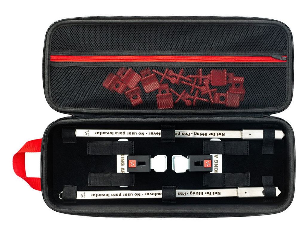 Viking Arm tralltillbehör set är den perfekta lösningen för alla dina trall- och golvprojekt. Förpackad i en praktisk nylonväska med hårt skal, inkluderar detta set allt du behöver för att snabbt och med hög kraft både spänna ihop och trycka isär trall, plank och golv. Setet innehåller 2 st spännbackar, 2 st 35 cm förlängare och 15 st distanser, och ger en total spännvidd på 71 cm per Viking Arm med möjlighet att förlänga ytterligare efter behov.