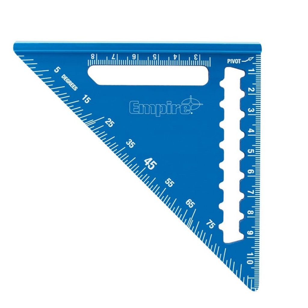 - Vinkelns tydliga metriska markeringar i cm/mm gör att du kan använda den raka kanten som en linjal och för att markera helt raka 90° linjer.