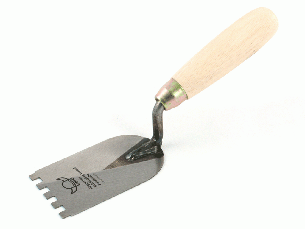 Trähandtag med blad av stål. 6 x 6 mm tandning.