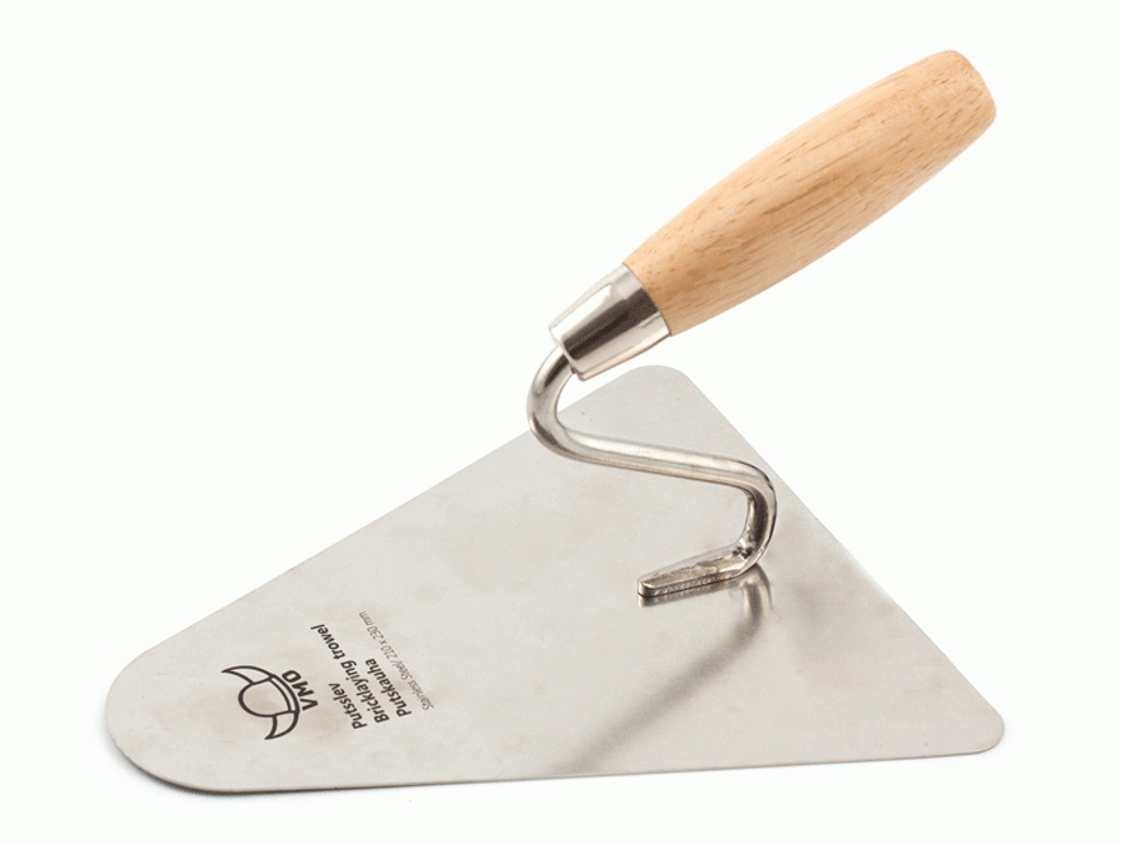 Trähandtag med blad i rostfritt stål. Svanhals för upphängning på kärl.
