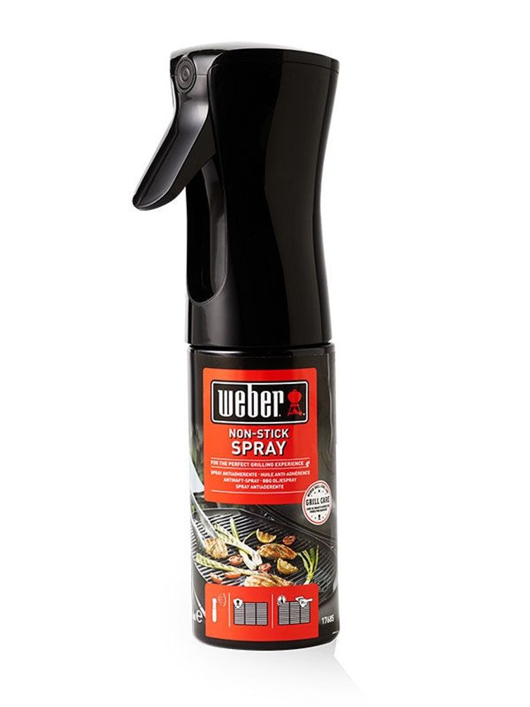 Webers 17685 är en BBQ spray som är gjord på 100% naturliga ingridienser. BBQ-Sprayen smörjer in ditt galler och förhindrar att kötten fastnar i gallret. Spraya på direkt på gallret innan du lägger på maten.