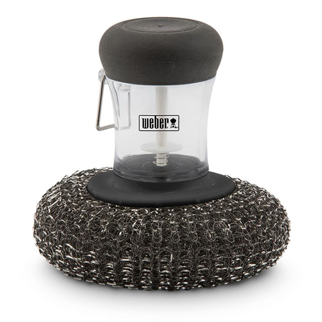 Weber Stålboll 6209 är en rengöringsborste som enkelt tar bort inbränd mat, samtidigt som den skyddar stekplattans släta yta. Placera borsten på stekplattan och tryck lätt på handtagets knapp för att släppa ut lite rengöringsmedel.